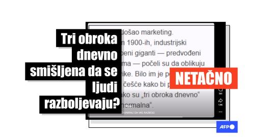 Glavne vesti Regioni Teme Rat u Ukrajini Izraelsko-palestinski konflikt Klima Vakcine Balkan Evropa Severna Amerika Bliski Istok Latinska Amerika Azija-Pacifik Afrika Politika Zdravlje Okolina Nauka Image Veštačka inteligencija Objavljeno 08. 12. 2025. Tri obroka dnevno nisu nastala da bi ljudi bili pod kontrolom ili da im se naruši zdravlje Image Veštačka inteligencija Objavljeno 12. 11. 2025. Slike i snimci na kojima Dijana Hrka 'krši' štrajk glađu su generisani pomoću veštačke inteligencije Image Veštačka inteligencija Objavljeno 04. 11. 2025. Fotografija žene koja štiti svoje dete u Sudanu generisana je veštačkom inteligencijom Image Veštačka inteligencija Objavljeno 03. 11. 2025. AI slika saudijskog 'nebeskog stadiona' prevarila publiku širom sveta Image Veštačka inteligencija Objavljeno 30. 10. 2025. Video koji prikazuje skandiranje norveških navijača za Palestinu tokom meča sa Izraelom je generisan pomoću AI-a Image Objavljeno 21. 10. 2025. Britanski premijer Starmer nije legalizovao incestne brakove Image Objavljeno 20. 10. 2025. Visok nivo holesterola ne štiti telo od raka, srčanih bolesti ni moždanog udara Image Vakcine Objavljeno 17. 10. 2025. Ljudi vakcinisani protiv kovida-19 mogu donirati krv Image Vakcine Objavljeno 15. 10. 2025. Vakcine protiv hepatitisa B ne sadrže ljudsku i životinjsku DNK i ne izazivaju doživotne autoimune bolesti Image Objavljeno 02. 10. 2025. Snimak glasanja u Azerbejdžanu podeljen uz netačnu tvrdnju da prikazuje 'prevaru tokom moldavskih izbora u Italiji' Image Rat u Ukrajini Objavljeno 26. 09. 2025. Ruski dronovi iznad Poljske: kuća je pogođena projektilom, nije oštećena tokom ranije oluje Image Protesti u Srbiji Objavljeno 10. 09. 2025. Slika hrvatskog poslanika u Evropskom parlamentu je fotošopirana na transparent sa studentskog protesta Image Rat u Ukrajini Objavljeno 10. 09. 2025. Snimak ne prikazuje šeficu Evropske unije u automobilu okruženom demonstrantima u Bugarskoj Image Protesti u Srbiji Objavljeno 05. 09. 2025. Slika pristalica SNS-a sa transparentom 'protiv blodada' je veštački izmenjena Image Objavljeno 03. 09. 2025. Snimak prikazuje rudnik soli u Španiji, ne tunele ispod Beograda Image Objavljeno 29. 08. 2025. Fotografija ne pokazuje pukotinu, već dilataciju koja je namerno napravljena tokom izgradnje mosta Image Protesti u Srbiji Objavljeno 27. 08. 2025. Đoković i nezavisni mediji mete netačnih tvrdnji na društvenim mrežama Image Protesti u Srbiji Objavljeno 21. 08. 2025. Lažni citat pripisan Nikolini Sinđelić kruži društvenim mrežama nakon njenih optužbi protiv komandanta JZO Image Veštačka inteligencija Objavljeno 20. 08. 2025. Slika ne prikazuje evropske lidere ispred Ovalnog kabineta, generisana je pomoću veštačke inteligencije Image Objavljeno 20. 08. 2025. Ne postoji stranica sa pesmom 'Za dom spreman' u čitanci iz 1937. godine: slika nije autentična Image Objavljeno 13. 08. 2025. Kompilacija starih snimaka netačno je predstavljena da prikazuje cunami izazvan zemljotresom u Rusiji 2025. godine Image Objavljeno 12. 08. 2025. Snimci se ponovo pojavljuju van konteksta nakon upozorenja na cunamiju izazvanih zemljotresom u Rusiji Image Objavljeno 08. 08. 2025. Pčelinji otrov se za sada ne smatra lekom za rak Image Izraelsko-palestinski konflikt Objavljeno 06. 08. 2025. Viralne slike ljudi koji morem šalju u Gazu flaše pune riže su generisane veštačkom inteligencijom Image Protesti u Srbiji Objavljeno 05. 08. 2025. Snimak policajca koji se žali jer 'čuva kriminalce' je generisan veštačkom inteligencijom Image Veštačka inteligencija Objavljeno 31. 07. 2025. Uređeni i stari snimci kruže internetom sa netačnim upozorenjima na katastrofu u Nacionalnom parku Jelouston Image Objavljeno 25. 07. 2025. Viralna video kompilacija pogrešno predstavlja stare snimke kao poplave u Teksasu Image Veštačka inteligencija Objavljeno 15. 07. 2025. Video izveštaj o navodnoj smrti francuskog hirurga povezanog sa Brižit Makron je lažan Image Veštačka inteligencija Objavljeno 11. 07. 2025. Navodni izveštaj saudijske televizije o Zelenskom kako kupuje luksuzni stan u Dubaiju je falsifikovan Image Protesti u Srbiji Objavljeno 09. 07. 2025. Slika studenata na Tompsonovom koncertu je generisana veštačkom inteligencijom Image Objavljeno 08. 07. 2025. Obmanjujuće tvrdnje o dijagnostičkim metodama za rak se šire na društvenim mrežama Image Veštačka inteligencija Objavljeno 08. 07. 2025. Društvene mreže preplavljene snimcima navodne vojne moći Irana, generisanim veštačkom inteligencijom tokom rata sa Izraelom Image Iran Objavljeno 27. 06. 2025. Video prikazuje izraelsku policiju na demonstracijama 2024. a ne protest Izraelaca protiv napada na Iran u junu 2025. Image Iran Objavljeno 25. 06. 2025. Stari snimci napada u Siriji i u Rusiji pogrešno predstavljeni kao američki udari na Iran Image Iran Objavljeno 23. 06. 2025. Snimak sukoba Izraelaca iz 2022. netačno je predstavljen u kontekstu rata sa Iranom 2025. godine Image Izraelsko-palestinski konflikt Objavljeno 23. 06. 2025. Snimak prikazuje skupljače dragocene gljive u Nepalu, a ne ljude koji nose pomoć Gazi Image Iran Objavljeno 23. 06. 2025. Snimak požara u Kini pogrešno predstavljen kao posledica iranskog napada u Tel Avivu Image Iran Objavljeno 20. 06. 2025. Video prikazuje požar u zgradi u Dubaiju, a ne iranski napad na 'kule bliznakinje' u Tel Avivu Image Veštačka inteligencija Objavljeno 20. 06. 2025. Snimak generisan veštačkom inteligencijom netačno predstavljen kao Tel Aviv nakon iranskog napada u junu 2025. Image Objavljeno 12. 06. 2025. Predsednik Vučić negira istoriju napada na novinare Image Protesti u Srbiji Objavljeno 12. 06. 2025. Snimak incidenta tokom protesta 15. marta 2025. pogrešno predstavljen kao napad nakon lokalnih izbora Image Objavljeno 10. 06. 2025. Poruka Ursule fon der Lajen 'gotovi ste' na bugarskom znači 'spremni ste' Image Objavljeno 06. 06. 2025. Ponovo se pojavl