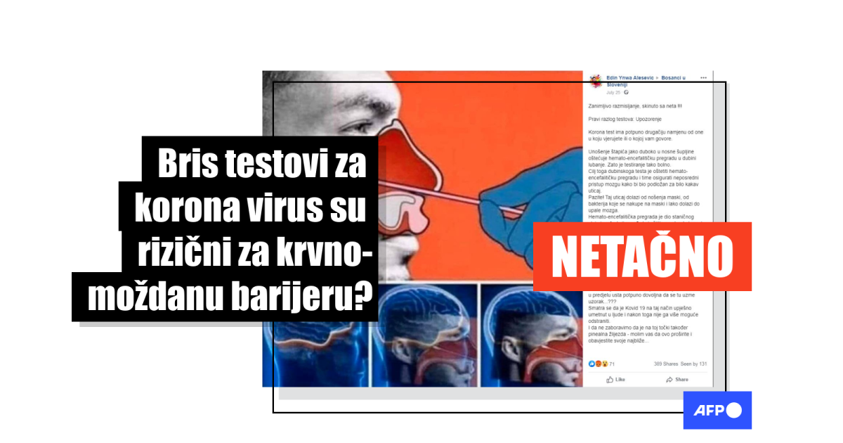 Međutim, tvrdnja da bris dodiruje “hemato-encefalitičku pregradu” odnosno krvno-moždanu barijeru je netačna, kažu eksperti.