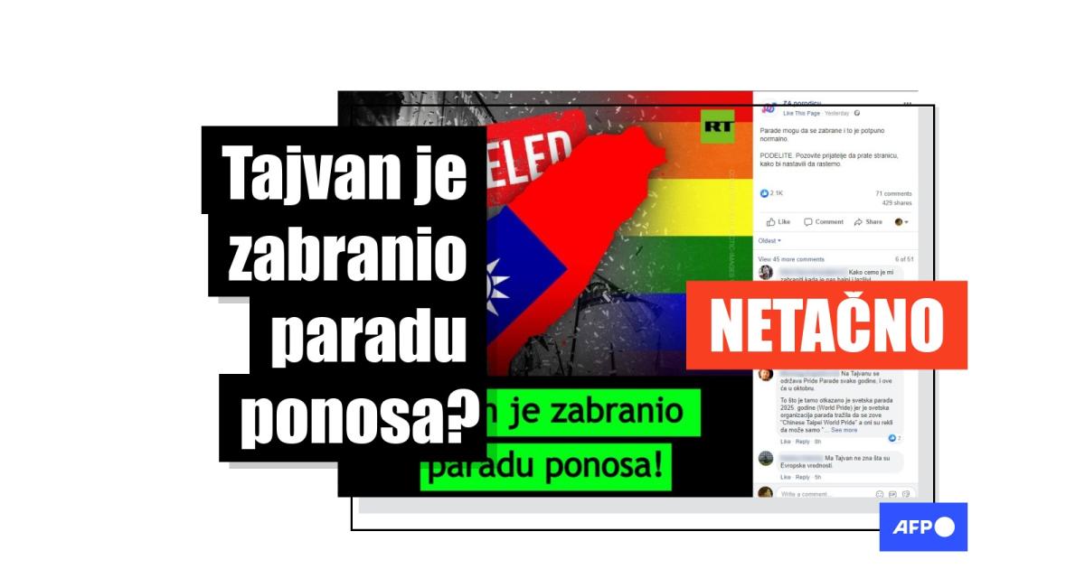 Objave na Fejsbuku, u kojima se tvrdi da je "Tajvan zabranio paradu ponosa", pojavile su se nekoliko dana nakon objave tamošnjih organizatora 12. avgusta 2022. da su planovi da se događaj Svetski prajd 2025. održi na ostrvu otkazani. Ipak, ta odluka je doneta nakon spora sa davaocem licence događaja InterPrajd (InterPride) oko upotrebe naziva Tajvan u imenu događaja. To nije imalo nikakve veze sa lokalnom paradom ponosa ili bilo kakvim povlačenjem prava LGBTQ osoba, kao što se impliciara u objavama.