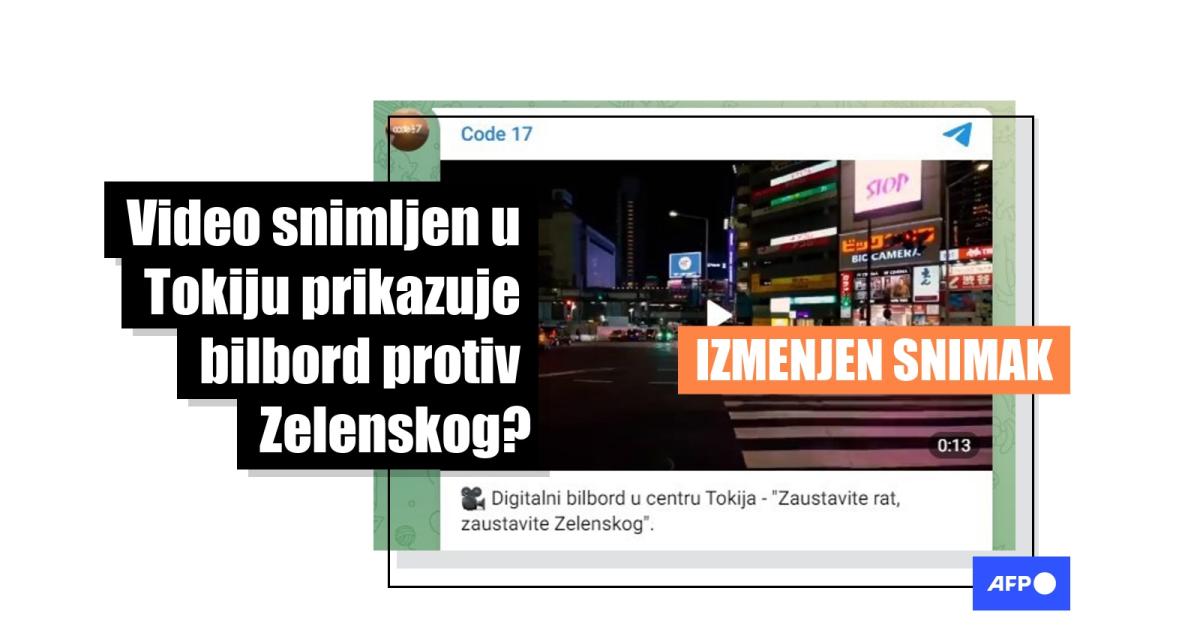 Stari snimak iz Tokija je izmenjen da bi prikazivao bilbord protiv Zelenskog