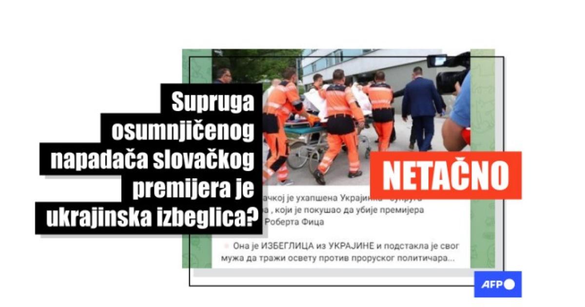 U postovima na sprskom objavljenim 17. maja 2024. na društvenim mrežama se netačno tvrdi da je supruga osumnjičenog "izbeglica iz Ukrajine" i da je "podstakla" svog muža da puca u novoizabranog premijera zbog njegovih stavova u vezi sa invazijom Rusije na Ukrajinu (arhivirano ovde). Takav post je na Telegramu viđen preko 12.000 puta za deset dana. Tvrdnja je podeljena takođe na Fejsbuku i Eksu ("X") i na drugim jezicima poput slovačkog.