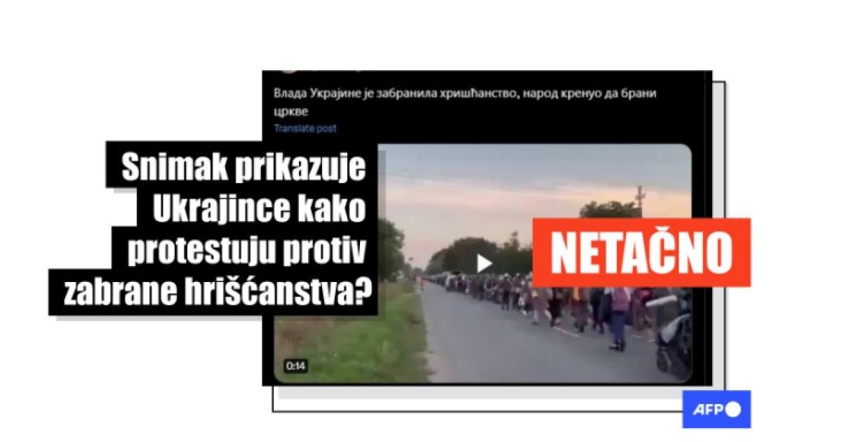 "Vlada Ukrajine je zabranila hrišćanstvo, narod krenuo da brani crkve," piše u postu objavljenom na Eksu 20. avgusta 2024. koji sadrži kratak snimak dugačke kolone ljudi koji hodaju putem. Isti snimak i tvrdnja su podeljeni i na Fejsbuku. Snimak je podeljen i na Telegramu uz tvrdnju da "nakon odluke predsednika i vlade Ukrajine da se ukine Pravoslavna crkva vernici su spremno krenuli u odbranu svoje vere."