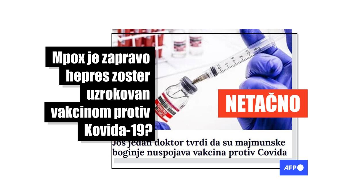 Mpox nije ista bolest kao herpes zoster i nije nuspojava vakcine protiv kovida-19, kažu stručnjaci, suprotno netačnim tvrdnjama koje su podeljene na društvenim mrežama u Srbiji i mnogim drugim zemljama nakon novog izbijanja virusa u Africi. Tvrdnja koja se širi u Srbiji uključuje intervju iz 2022. godine s bivšim nemačkim političarom koji je prethodno širio dezinformacije o koronavirusu. Mpox, koji je otkriven pre više od pola veka, je zarazna bolest koja se pojavila mnogo pre pandemije Kovida-19.