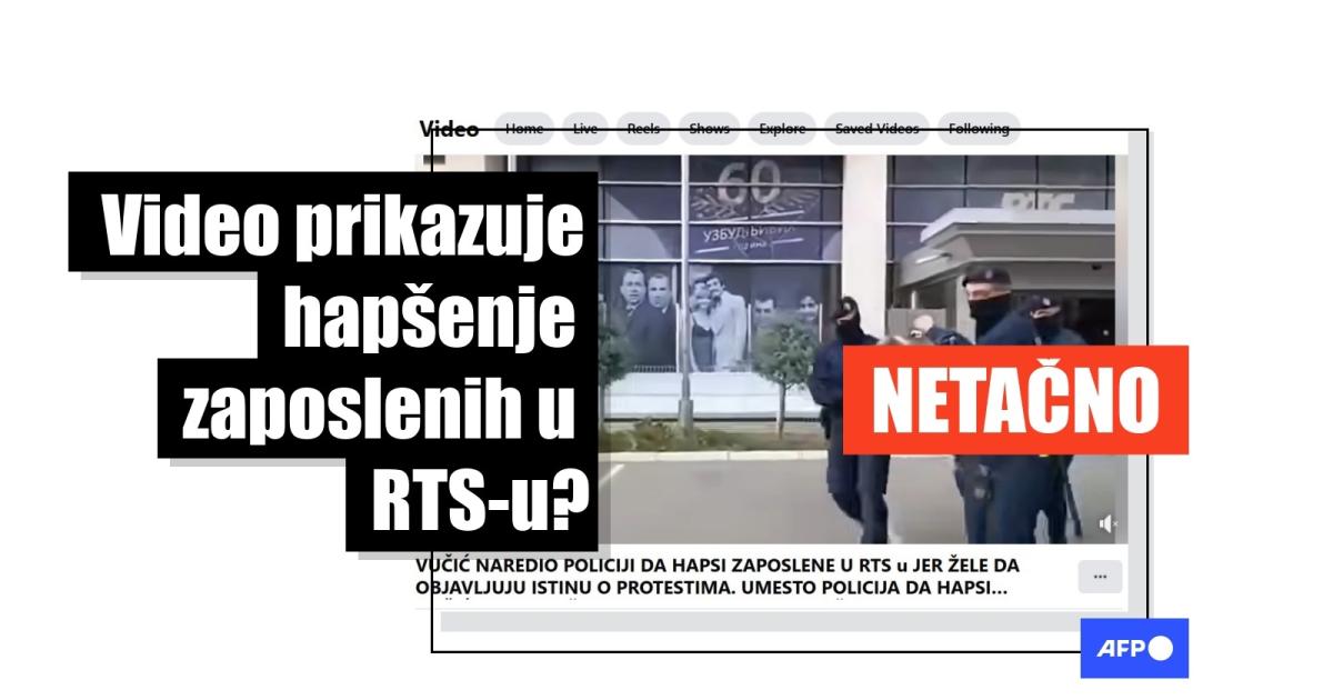 Međutim, tvrdnja da video prikazuje hapšenje radnika RTS-a nije tačna. Snimak je star skoro tri godine i prikazuje hapšenje članova organizacije "Narod dostojan Srbije", a snimila ga je ekipa novinske agencije FoNet, što je za AFP potvrdio direktor i glavni i odgovorni urednik ove agencije Zoran Sekulić.