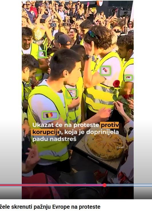 Višemesečni protesti protiv korupcije, koje predvode srpski studenti širom zemlje, započeti nakon tragičnog urušavanja nadstrešnice na železničkoj stanici u Novom Sadu, često su meta kampanja dezinformacija provladinih medija i njihovih saveznika na društvenim mrežama. U najnovijem pokušaju diskreditacije studentskog pokreta uz antihrvatskog narativa, na društvenim mrežama je zloupotrebljen medijski izveštaj o studentima koji su trčali iz Srbije do Brisela kako bi se netačno tvrdilo da su "trčali pod hrvatskom zastavom". Međutim, originalni izveštaj iz medija, kao i drugi snimci sa dočeka studenata u Briselu jasno pokazuju da su studenti na majicama nosili simbole više država, dok je srpska zastava bila posebno istaknuta na rukavu.