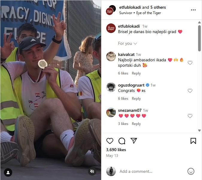Studenti su trčali štafetni ultramaraton od Novog Sada do Brisela, prolazeći kroz Hrvatsku, Sloveniju, Austriju, Nemačku, Francusku, Luksemburg i Belgiju (arhivirano ovde). Majice koje je nosila grupa koja je stigla u Brisel prikazuju mapu i zastave svake od ovih zemalja. Srpska zastava bila je vidljiva na levim rukavima svih trkača.