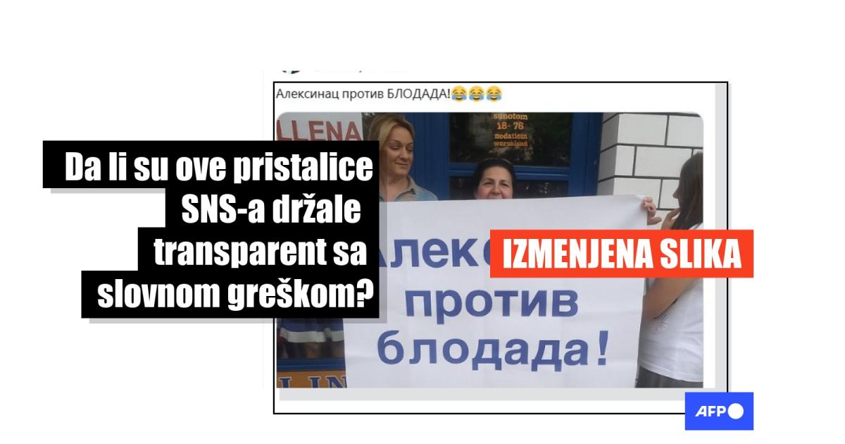 Slika pristalica SNS-a sa transparentom 'protiv blodada' je veštački izmenjena