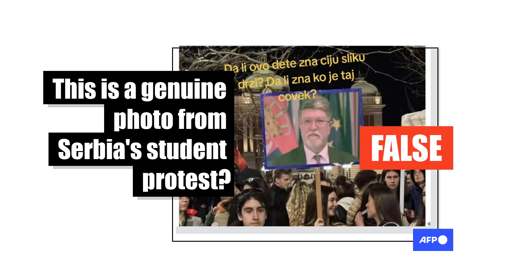 Student-led anti-corruption protests in Serbia that started on November 2024 are a regular target of disinformation aimed at discrediting those taking part. Members and supporters of the ruling Serbian Progressive Party like to label the participants as "Ustase" -- members of an extreme and fascist movement in Croatia before and during World War II. They also accuse them of being instrumentalised by Croatia to foment a regime change, or "colour revolution", in Serbia. In the latest such example of disinformation, a photo is being shared showing demonstrators holding a banner with an image of Croatian MEP Tonino Picula. However, the photo has been altered, as confirmed to AFP by the journalist who took the original.