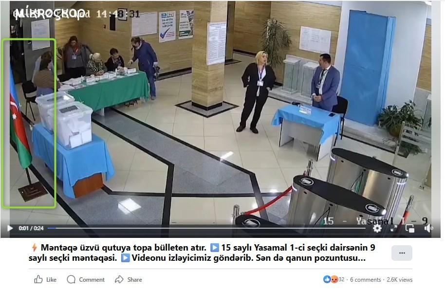 Na snimku se vidi i zastava Azerbejdžana na levoj strani iza stola na kojem se nalaze glasačke kutije.