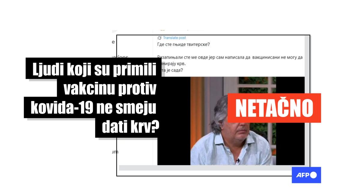 AFP je potvrdio sa Ninom Pantelić, redovnim davaocem krvi u beogradskom Institutu za transfuziju krvi, da je vakcinacija protiv kovida nikada nije sprečila da daje krv. Njena donorska kartica, koju je AFP video, pokazuje da je dala krv šest puta od svoje prve vakcine protiv kovida, uključujući 16. maja i u septembru 2023. godine.