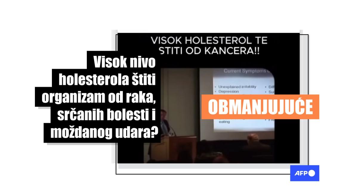 Kada je prisutan u visokim količinama, holesterol može biti veoma štetan po ljudsko zdravlje, potvrdili su medicinski stručnjaci koji su govorili za AFP. Ipak, od jula 2025. na društvenim mrežama kruži video u kojem jedan američki stomatolog obmanjujuće tvrdi da visok nivo holesterola štiti telo od raka, srčanih i moždanih udara. Brojne medicinske studije pokazuju da, iako visoki nivoi takozvanog "dobrog" holesterola (HDL) mogu imati određene koristi, visoki nivoi "lošeg" holesterola (LDL i VLDL) mogu povećati rizik od kardiovaskularnih bolesti, raka i drugih zdravstvenih problema.
