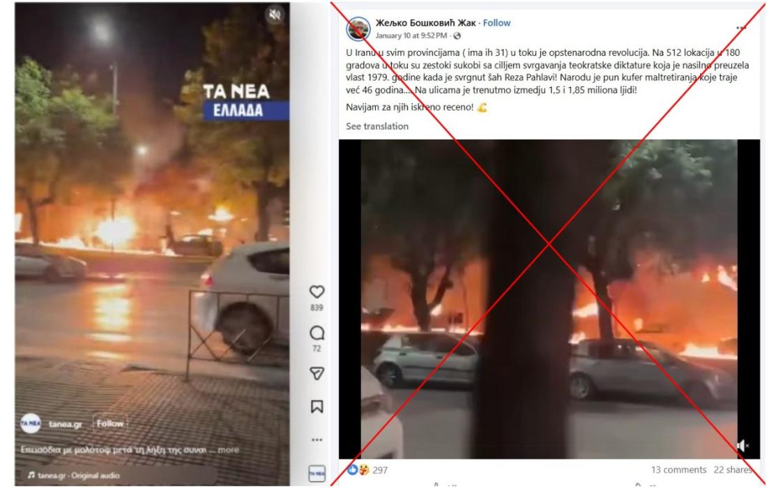 Video nasilja u Grčkoj koristi se za netačno predstavljanje protesta u Iranu