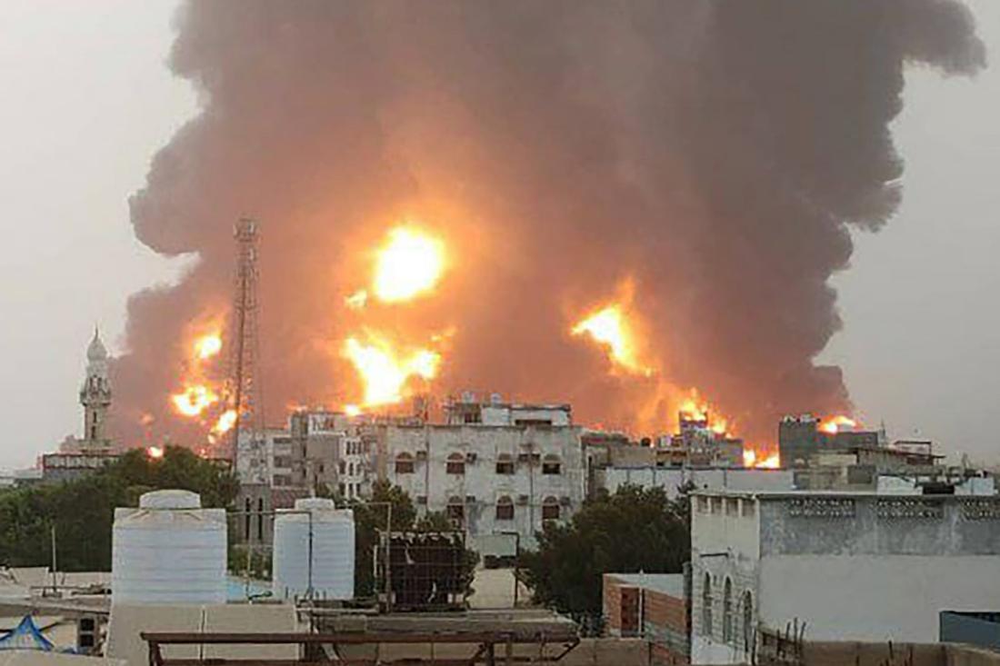 AFP je takođe pribavio handout fotografije koje je dostavio Medijski centar Ansarulah jemenskog pokreta Huti, a na kojima se vidi veliki požar nakon napada.