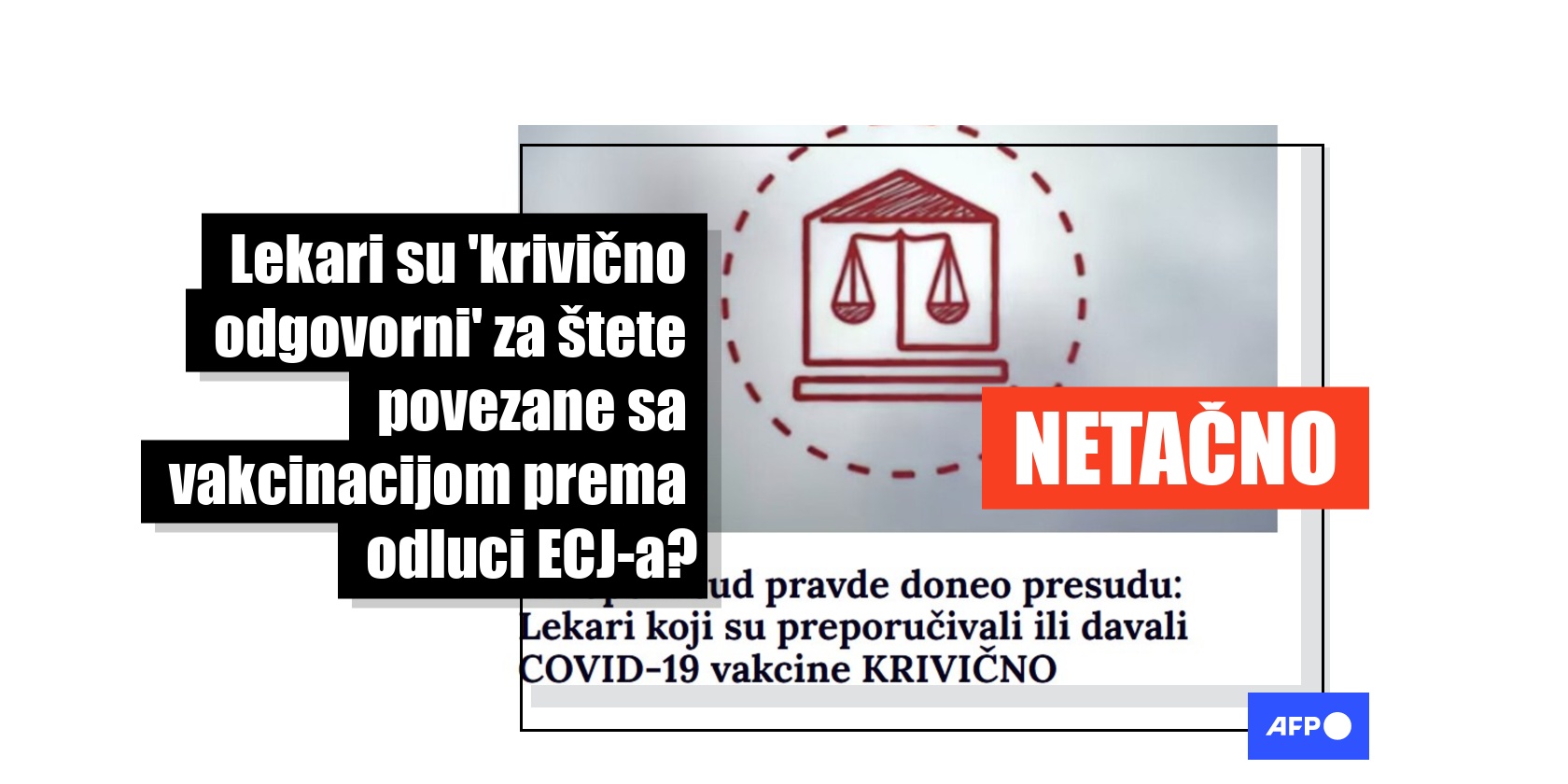 Evropski sud pravde nije presudio da su lekari 'krivično odgovorni' za štete uzrokovane vakcinacijom Objavljeno: 9. januara 2026. u 10.57
