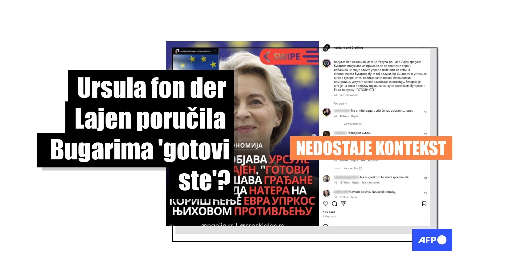 Poruka Ursule fon der Lajen 'gotovi ste' na bugarskom znači 'spremni ste' Objavljeno: 9. januara 2026. u 10.56